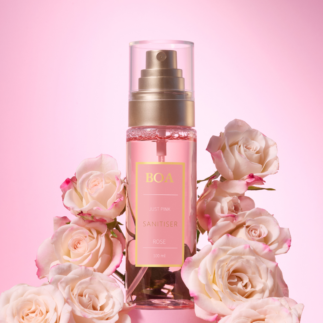 Just Pink Sanitiser - Rose, a luxurious 100ml hand sanitiser designed to keep your hands clean and refreshed. Encased in an elegant bottle with a rose-inspired scent, this sanitiser combines effective germ protection with a delicate, floral fragrance. Perfect for on-the-go use, its sleek design and soothing formula make it a must-have accessory for maintaining hygiene with a touch of sophistication.
